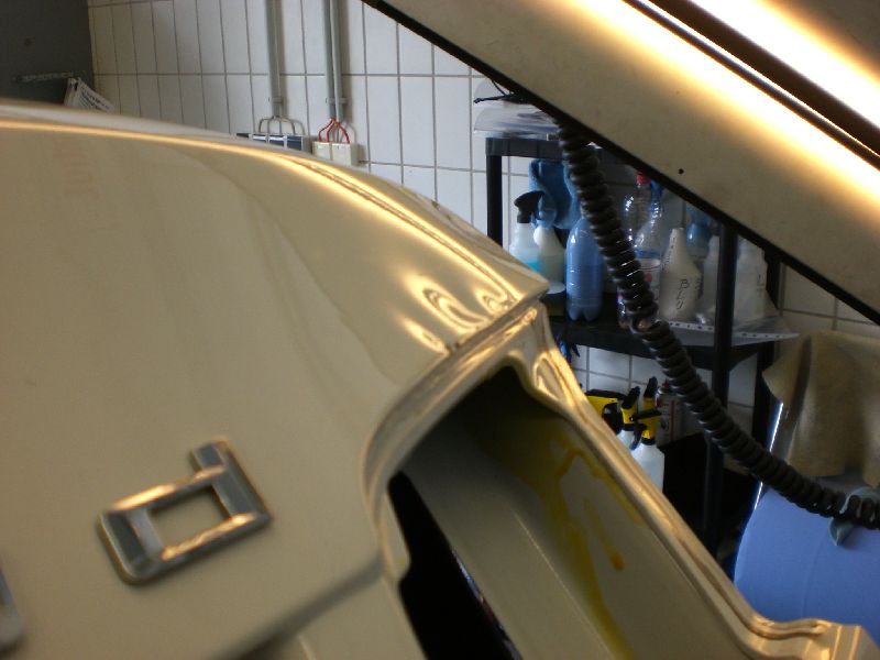 Notfall beim Aufbereiter: beim Waschen sind Dellen entstanden. Besonders schwierig, da die Kante auch betroffen war