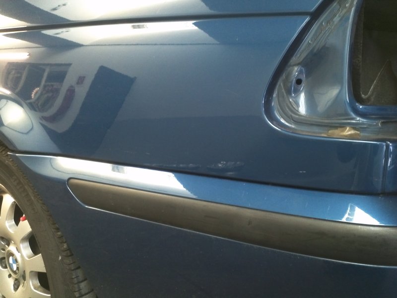 Kleine Dellen und Beulen in einem BMW 3er Seitenteil.